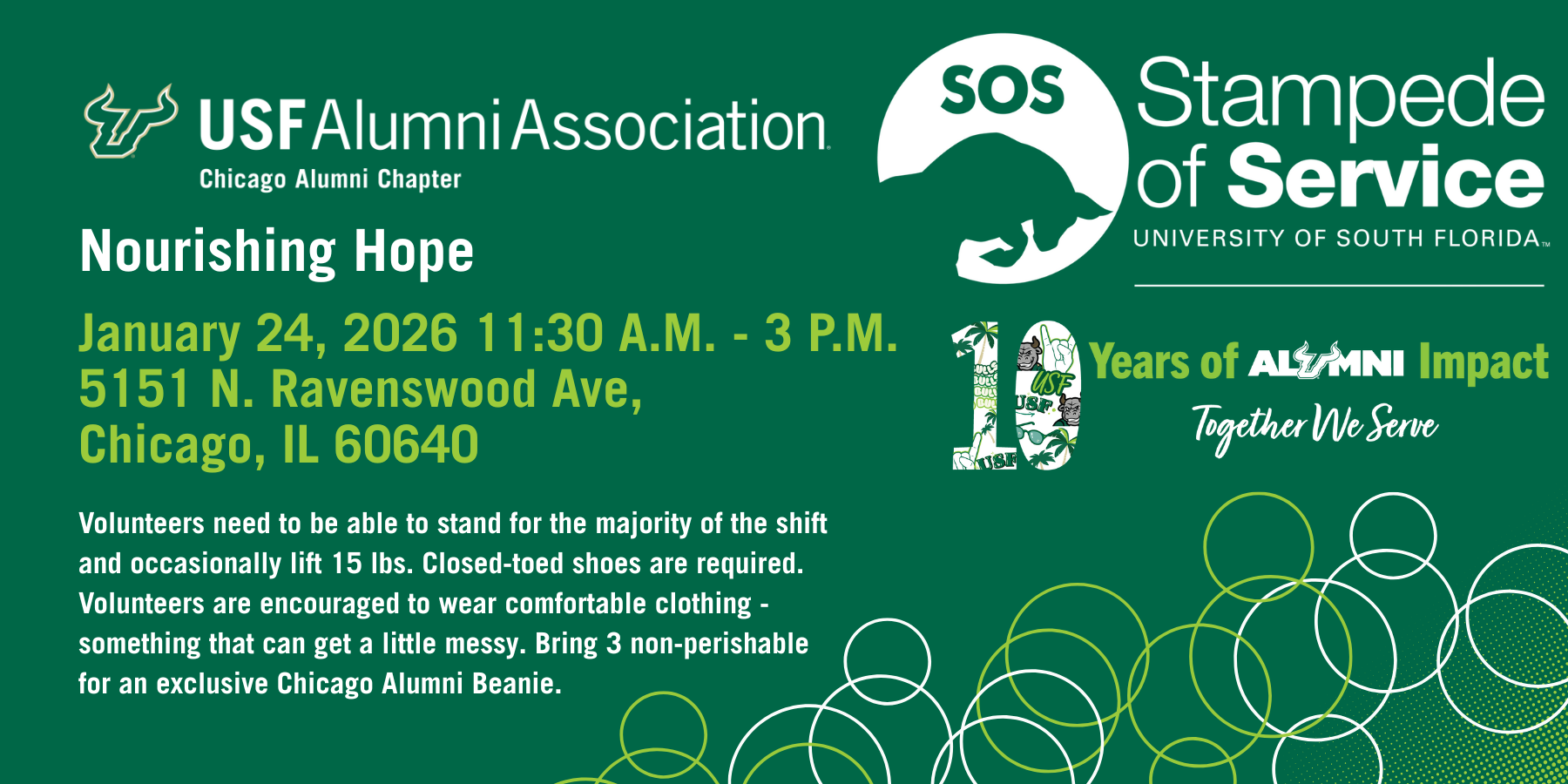If you bring 3 non-perishable food items you will receive an exclusive Chicago Alumni Beanie.