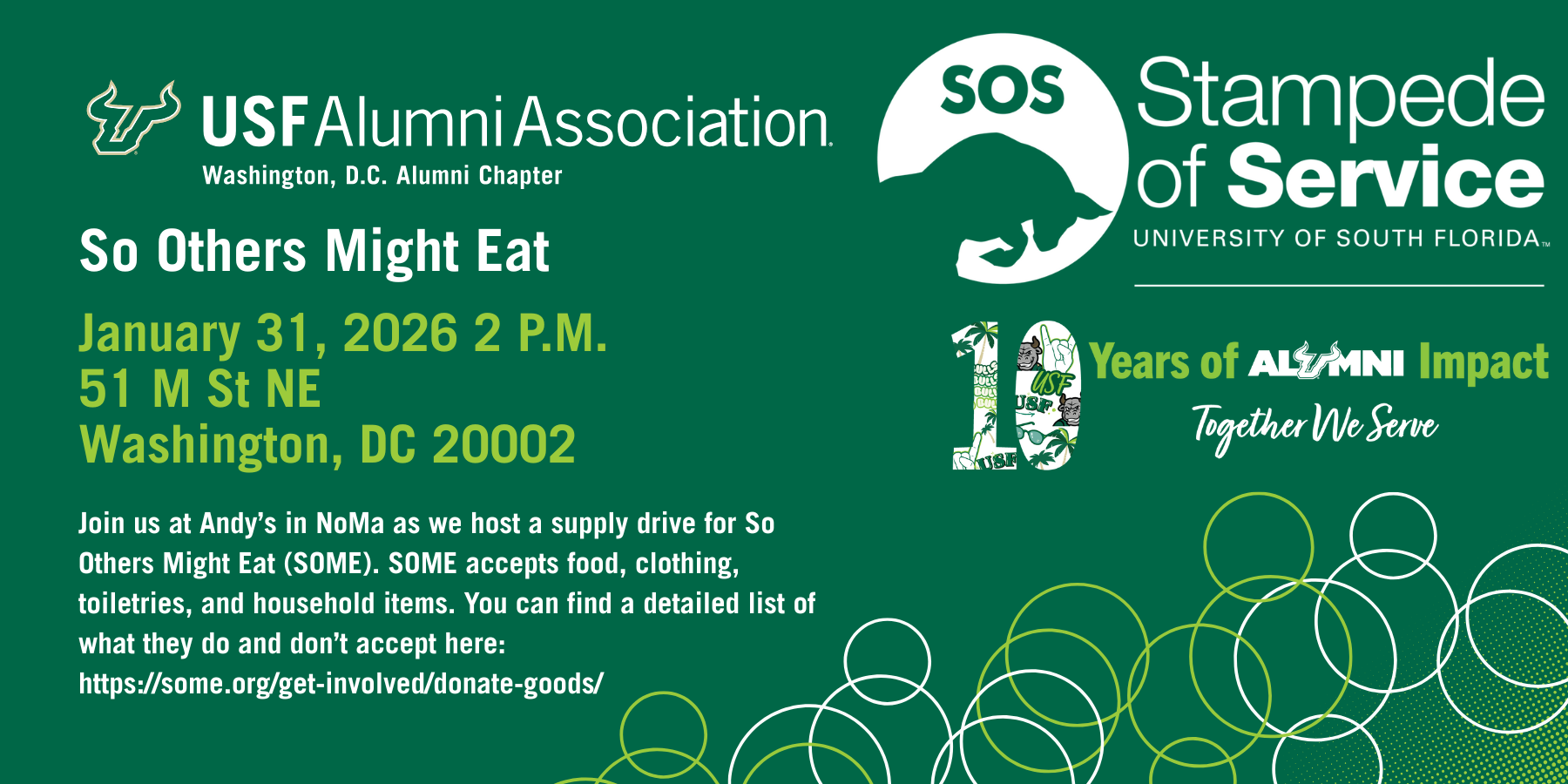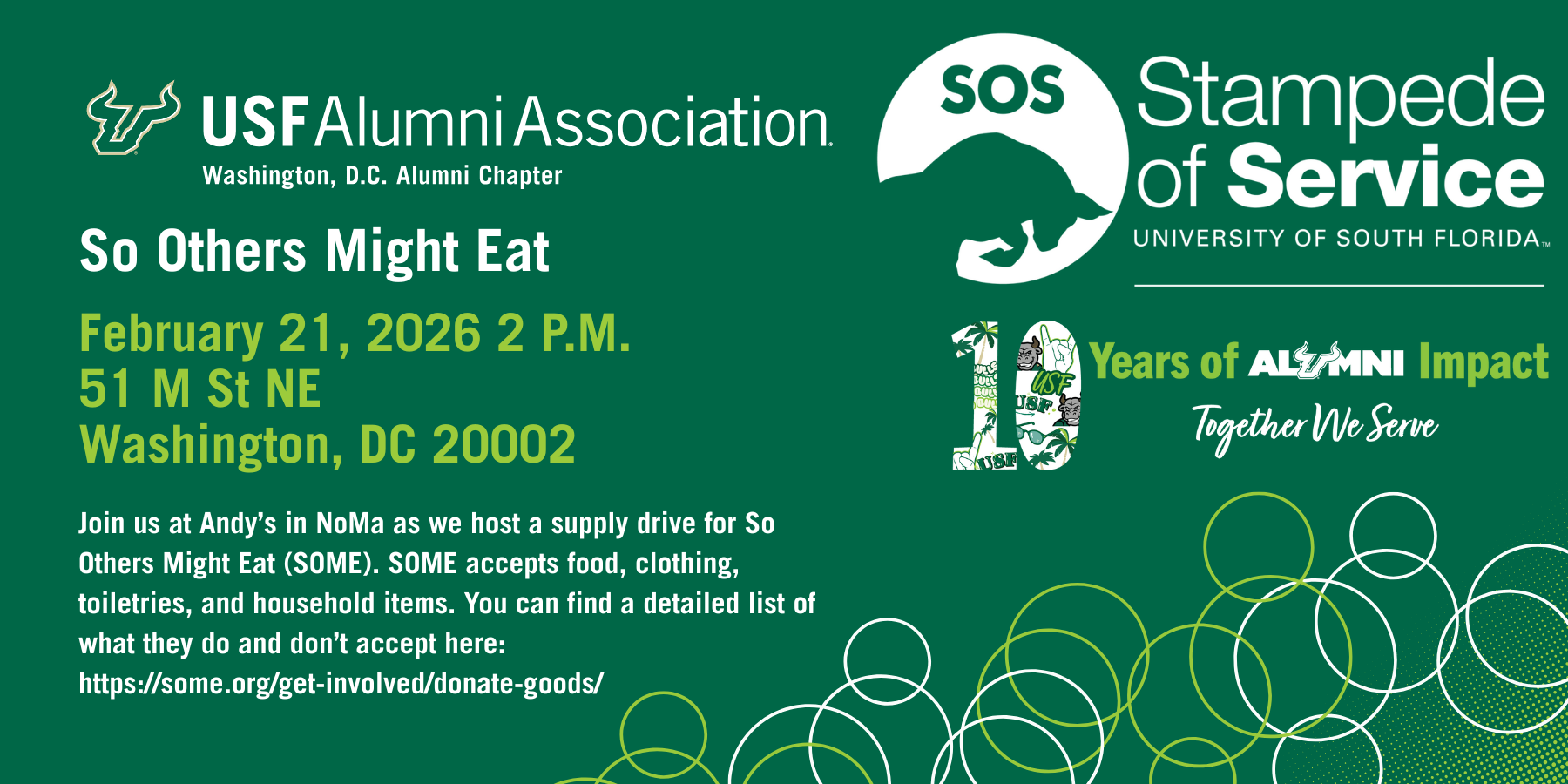 Join us at Andy’s in NoMa as we host a supply drive for So Others Might Eat (SOME). SOME accepts food, clothing, toiletries, and household items.